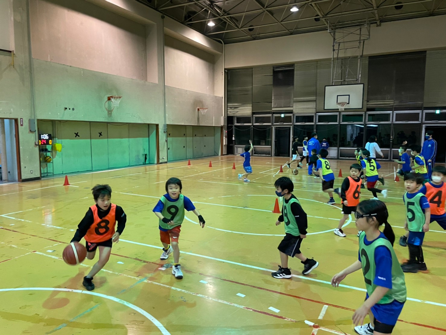 運動神経機能向上のラダートレーニングを始め、バスケットボールのボール所持のピポット、カラダの使い方、ボールキープの仕方を細かく指導をしました。